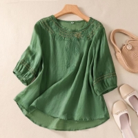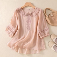 夏季新款棉麻刺繡襯衫 輕盈透氣 精緻美觀的復古刺繡工藝 穿上端莊優雅顯年輕 寬鬆舒適遮肉顯瘦 上身自帶典雅韻味 輕鬆駕馭各種場合