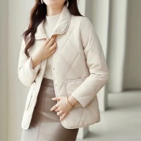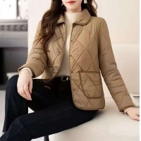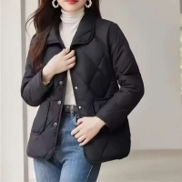 2025秋冬新款女士翻領棉服 菱形格薄款夾棉 秋冬外套棉衣 純色百搭顯氣質 四季可穿