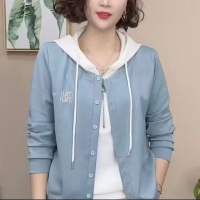 2025新款早秋 刺繡假兩件 時尚設計感休閒開衫 洋氣長袖連帽衛衣 時尚百搭 多色可選