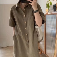 夏日常備棉麻襯衫裙 娃娃領顯臉小 H 型藏肉 貼膚清爽 穿去戶外常被誤認學生