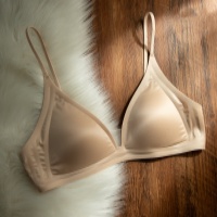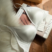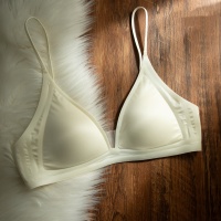 【法式珠光牛奶緞內衣】法式珠光牛奶絲緞面三角杯內衣,小胸聚攏大胸顯小,無痕細肩帶性感深v
