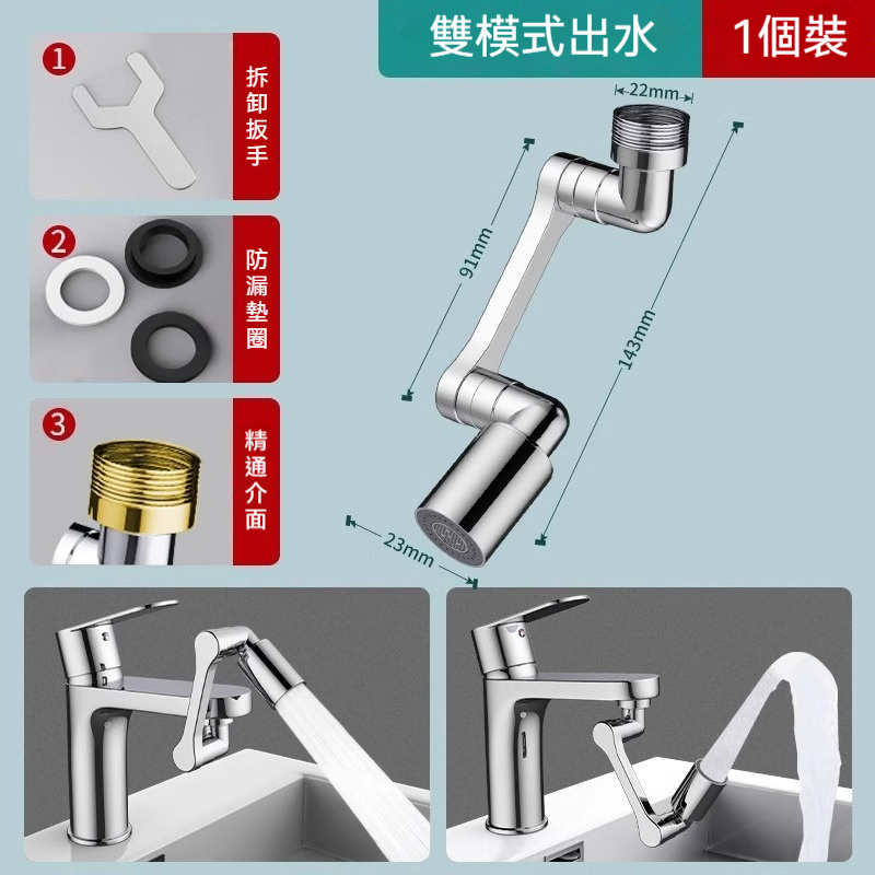 機械臂萬向水龍頭 360度靈活轉動 洗菜澆花不費力 水流大小隨心調 耐磨抗銹材質 廚房清潔超順手 安裝簡單 居家必備好物