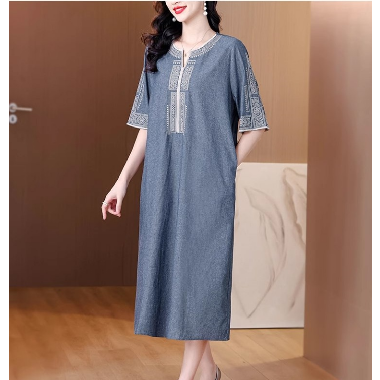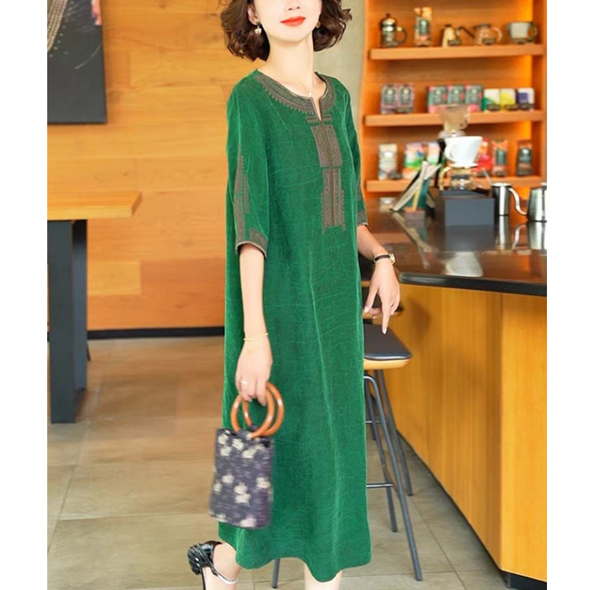 桑蠶絲材質連衣裙 手工刺繡點綴 選這件真絲裙 絲滑舒適 高級感爆棚 夏季穿著超合適