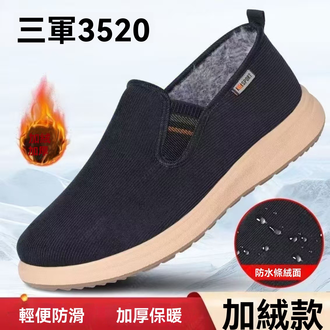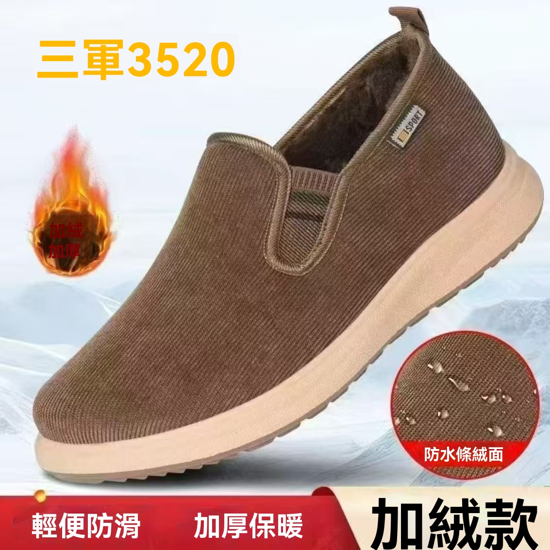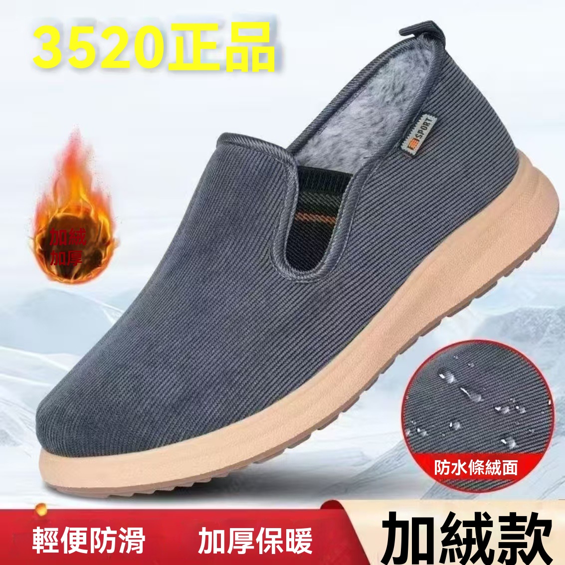 新款冬季加絨老北京條絨兔毛加絨棉鞋輕便一腳蹬休閒老人爸爸棉鞋