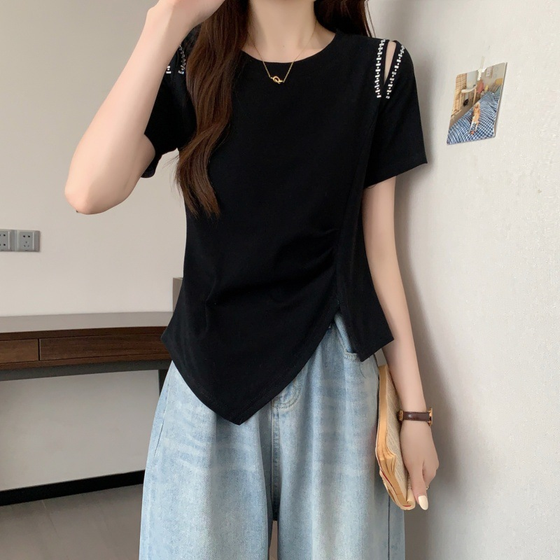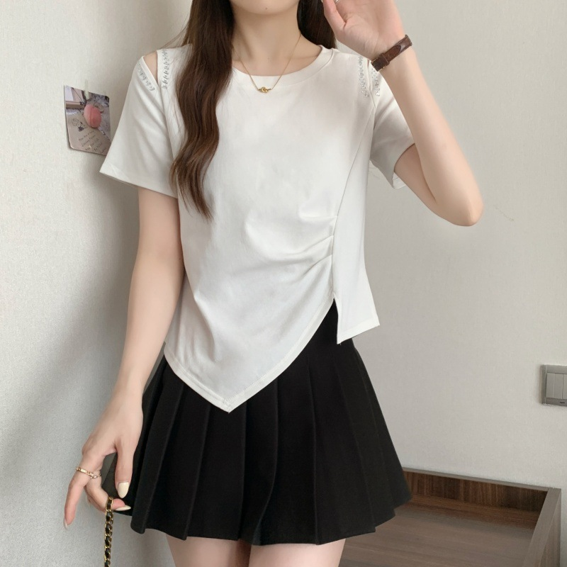 【熱銷爆款】2025夏季胖mm大码露肩短袖T恤新款收腰显瘦遮肉上衣