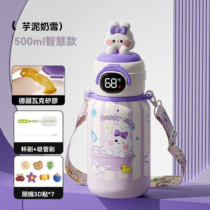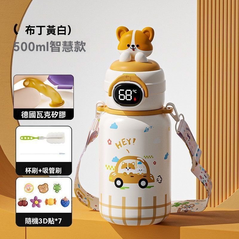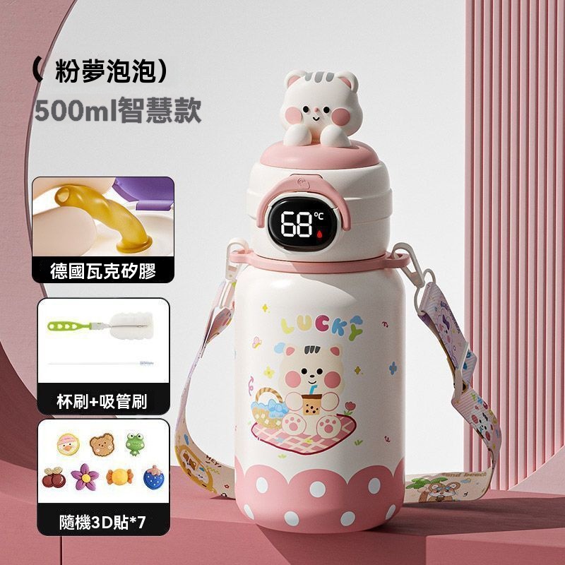 動物派對智能顯溫保溫杯雙飲可愛學生斜挎吸管防摔喝水杯子