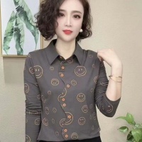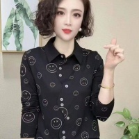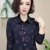2025秋季女士襯衫長袖氣質百搭印花翻領套頭襯衫減齡媽媽上衣